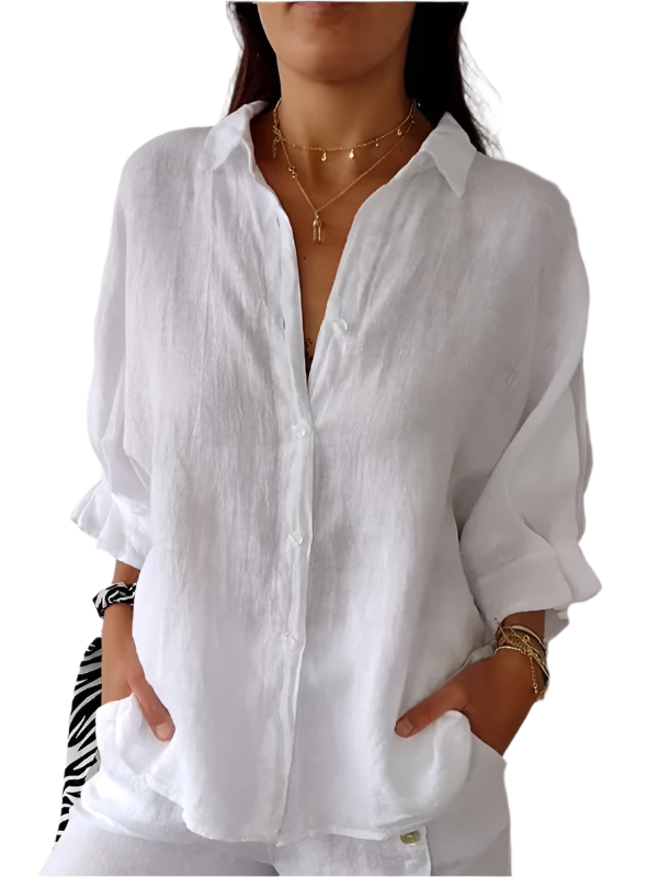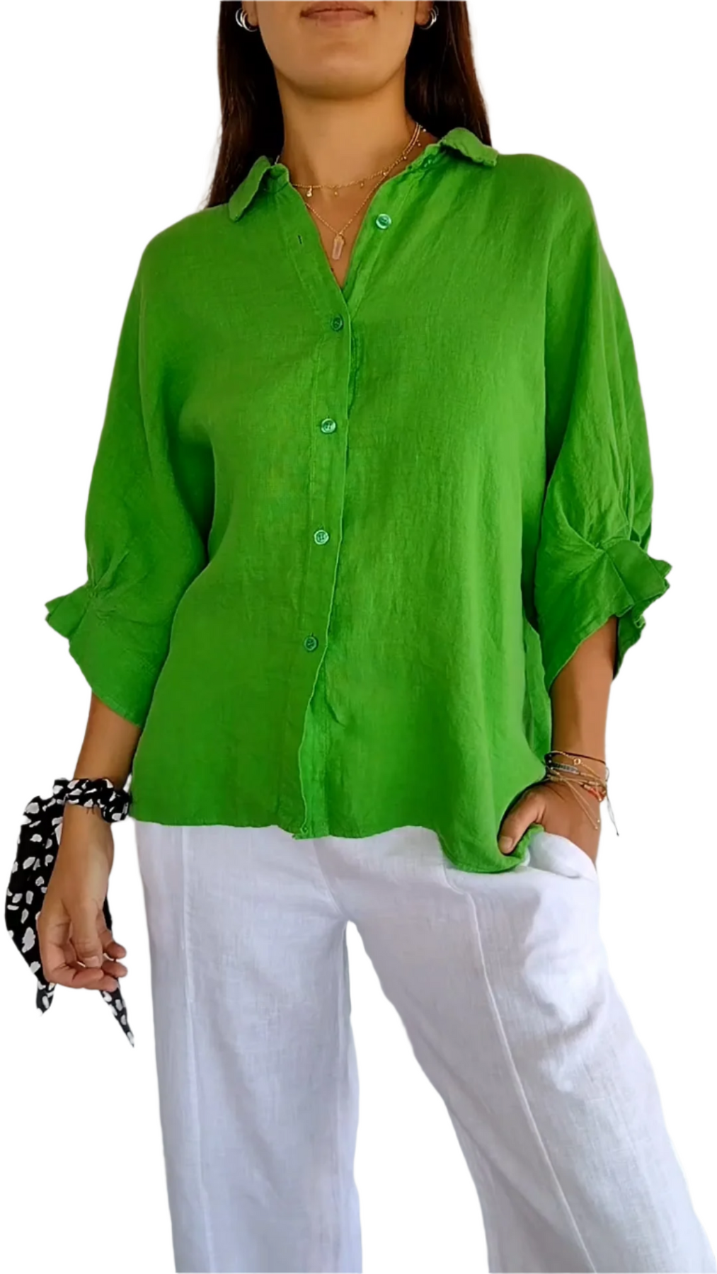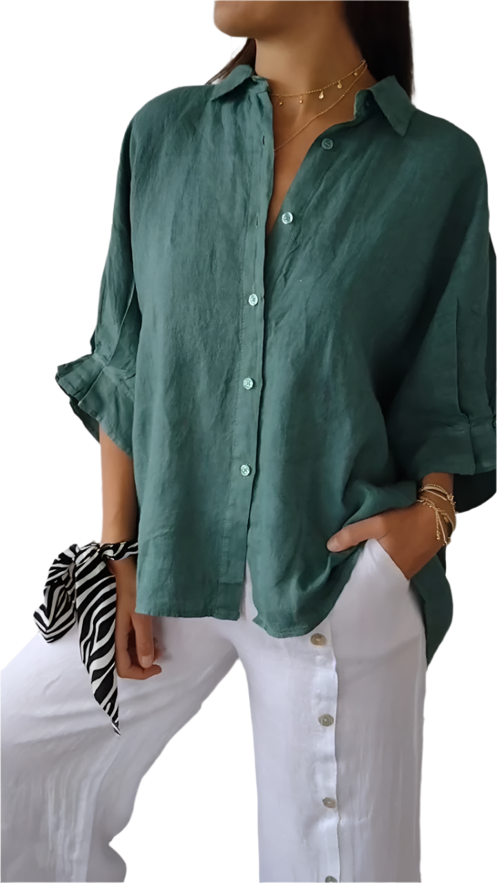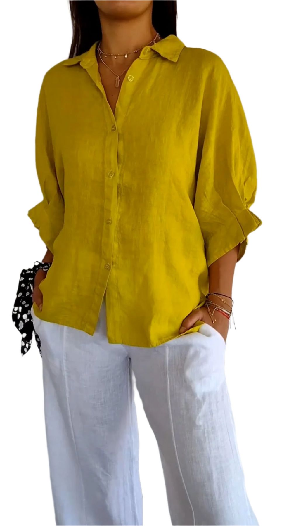 Mühelose Eleganz erwartet Sie mit dem Alessia Baumwoll-Leinen-Hemd für Damen, einer harmonischen Mischung aus atmungsaktiver Baumwolle und luxuriösem Leinen, entworfen für alle, die sowohl Komfort als auch Stil schätzen. Ob Sie sich für einen besonderen Anlass kleiden oder einen lässigen Ausflug genießen, dieses unverzichtbare Kleidungsstück sorgt dafür, dass Sie stets einen bleibenden Eindruck hinterlassen.