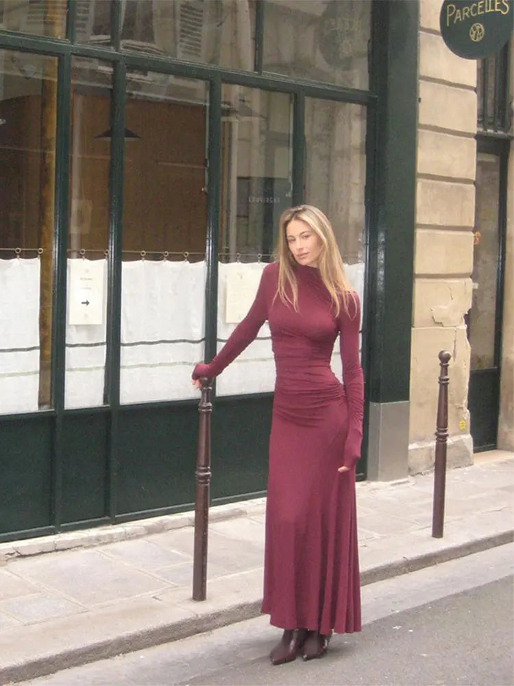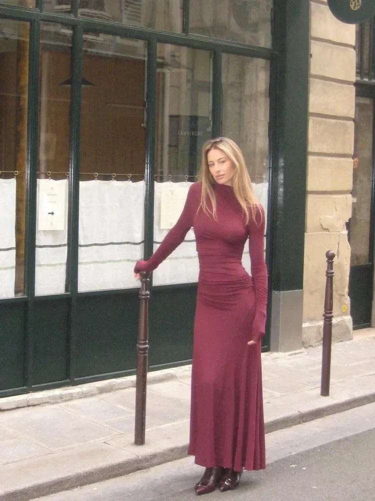 Ziehe alle Blicke auf dich mit dem Ariana Plissiertes Burgunderfarbenes Maxikleid. Dieses elegante, langärmelige Kleid in tiefem Burgunderrot ist mit einem hohen Kragen und raffinierten Falten gestaltet, um einen zeitlosen und verführerischen Look zu kreieren. Die figurbetonte Passform betont deine Silhouette, während die langen Ärmel und die Maxi-Länge für einen Hauch von Klasse und Anmut sorgen. Perfekt für festliche Anlässe und stilvolle Abende in der Stadt.