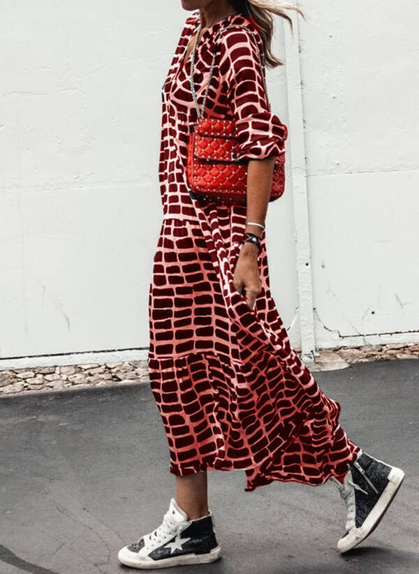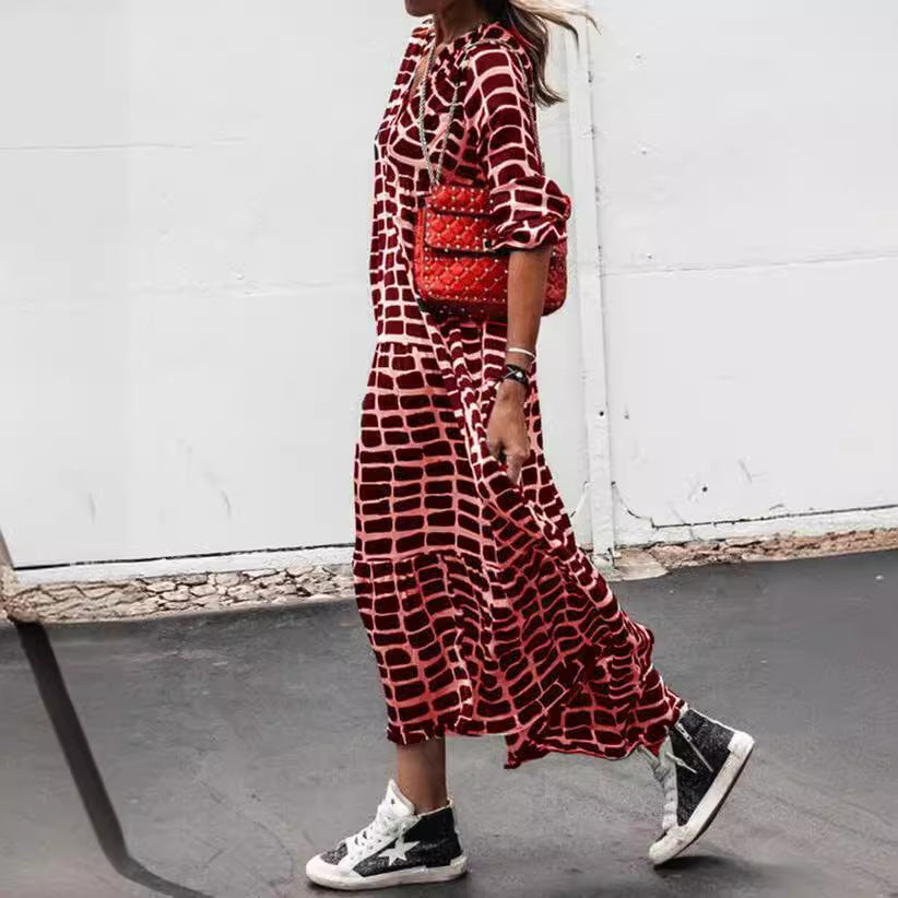 Damen Maxikleid mit grafischem Muster und lässigem Schnitt Fudus