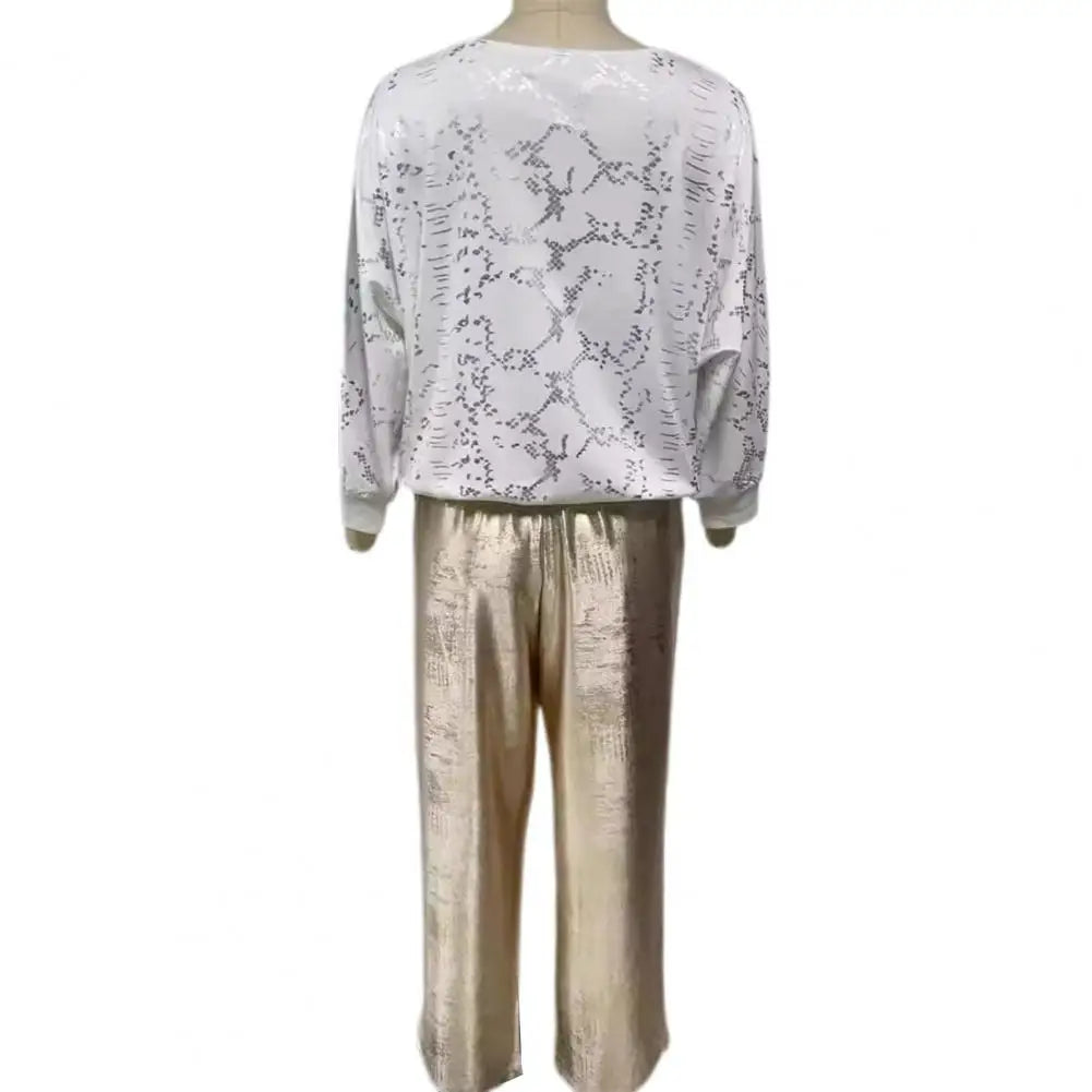 Elena – Weites Hosen-Set für Damen mit Eye-Print und V-Ausschnitt