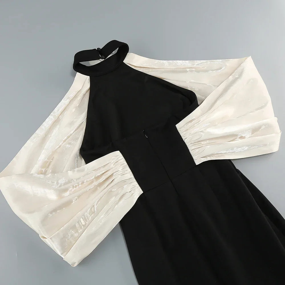 Léonie – Schulterfreies Midikleid für Damen mit Farbblock-Design