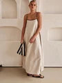 Dieses Kleid vereint klassische Schnitte mit modernen Akzenten und bietet die perfekte Mischung aus Stil und Komfort für jede Gelegenheit. Der schmeichelhafte Schnitt und die auffälligen Farbkontraste machen dieses Kleid zu einem echten Blickfang. Ob bei einer Sommerparty oder einem besonderen Event, es wird deine erste Wahl für einen mühelos eleganten Look sein.