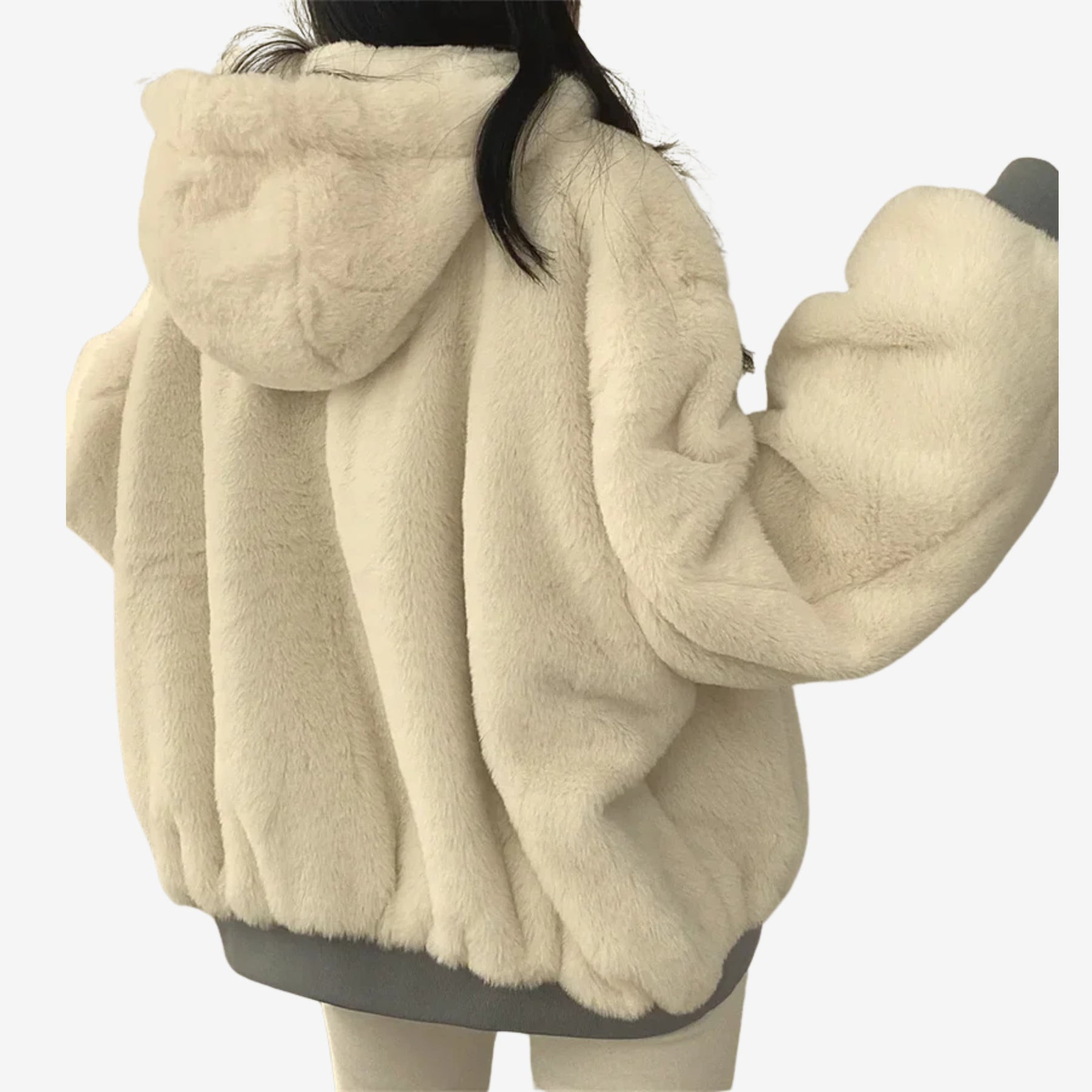 Zwei Looks in einer Jacke: Das wendbare Design ermöglicht den Wechsel zwischen einer flauschigen Kunstfell-Oberfläche und einer schlanken, wasserabweisenden Seite.